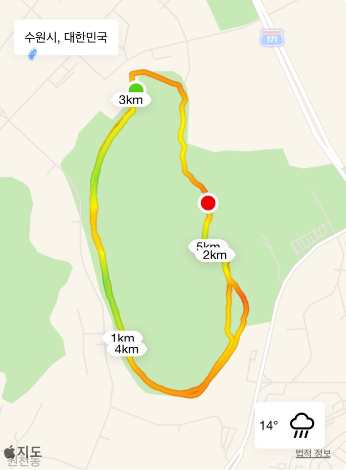 처음 5분 후반대 페이스로 뛸때는 정말 이상했습니다. 이정도로 느려서 되려나 싶었지만, 이 페이스로 제가 이용하는 대락 3K 길이의 트랙인 광교호수공원을 처음으로 완주했습니다. 뿐만 아니라 체력분배도 잘되어 완주하고도 2K를 더 달려서 인생 첫 5K 주를 할 수 있었습니다.